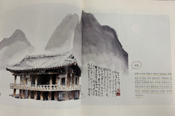 삼백 년 동안 말없이 영류정 뒷모습을 바라보고 서 있는 산이 있습니다. 사람들은 영류정만 카메라에 담아 가지만 나중에야 사진을 보다가 산이 병풍처럼 서서 따라온 걸 알고는 영류정이 아름다운 이유를 생각하게 됩니다.